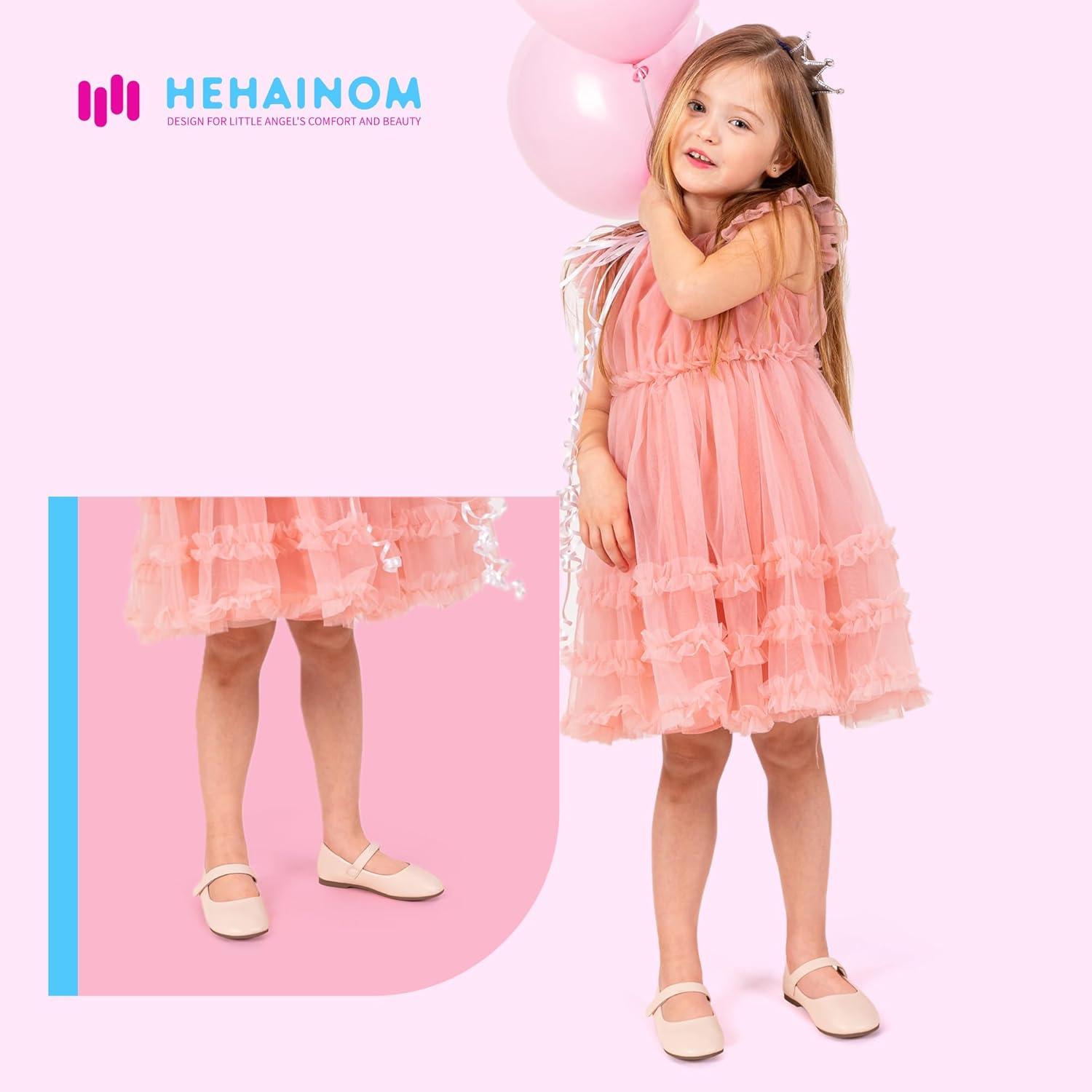 Hehainom Toddler Girls Flats Mary Jane Flower Girl Dress Shoes School Wedding Party Shoes(Beige Pu)