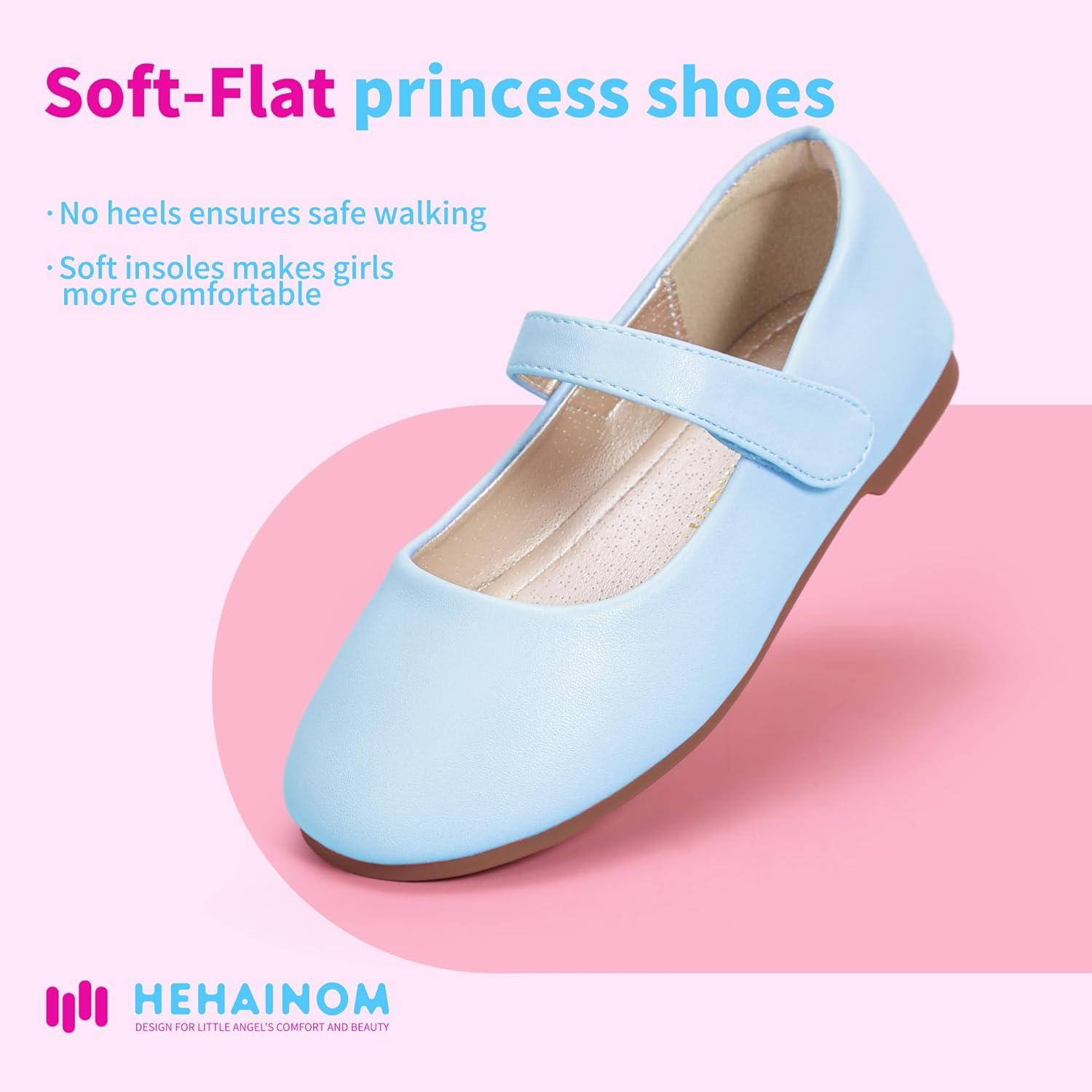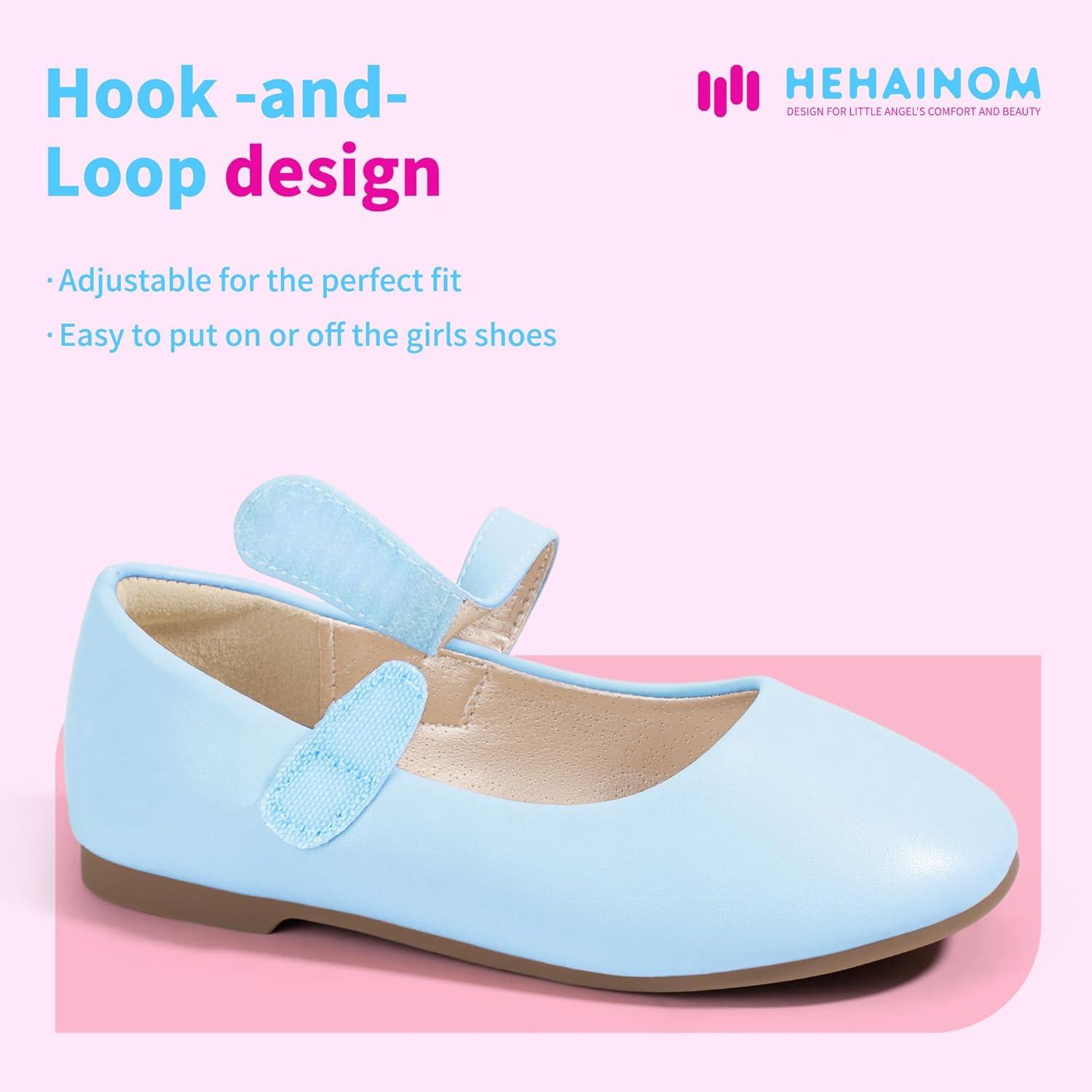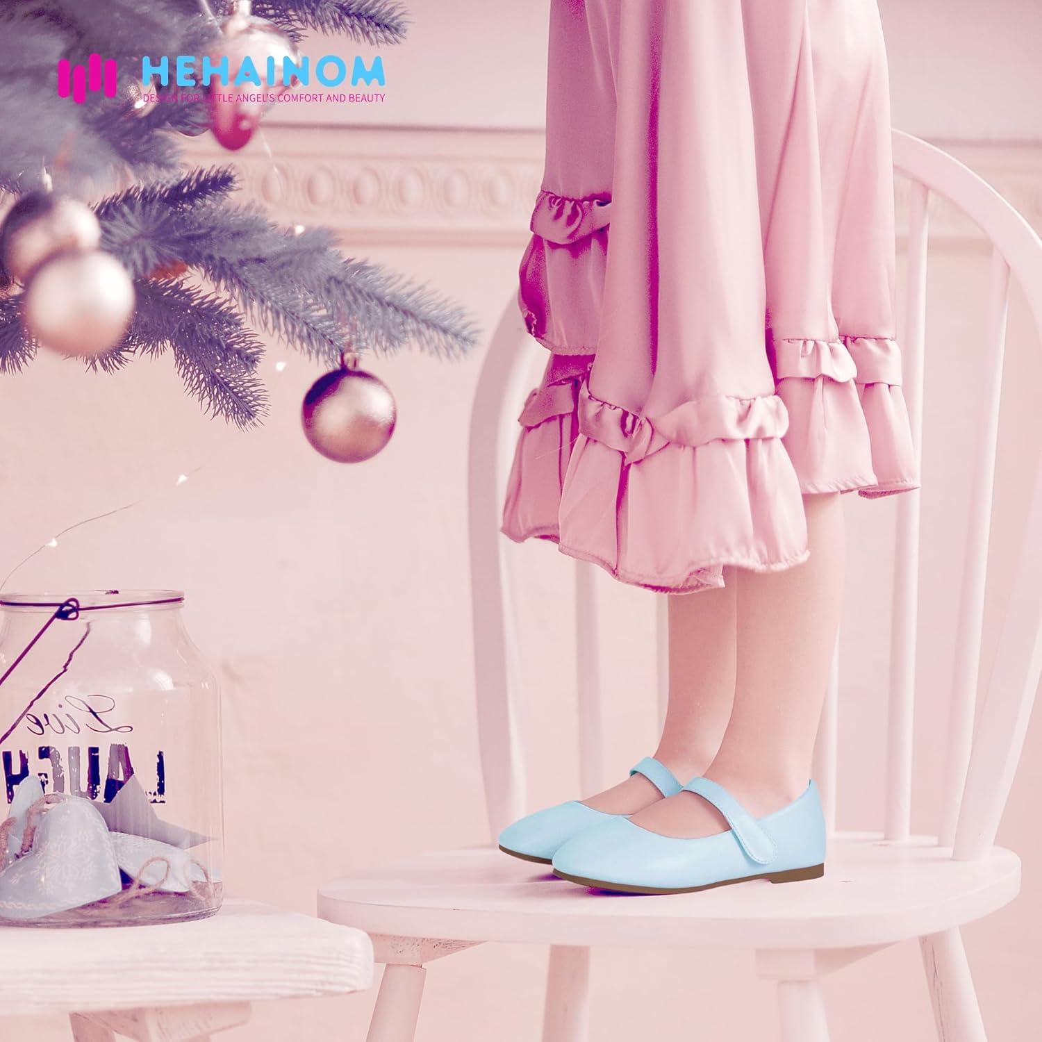 Hehainom Toddler Girls Flats Mary Jane Flower Girl Dress Shoes School Wedding Party Shoes(Bluepu)
