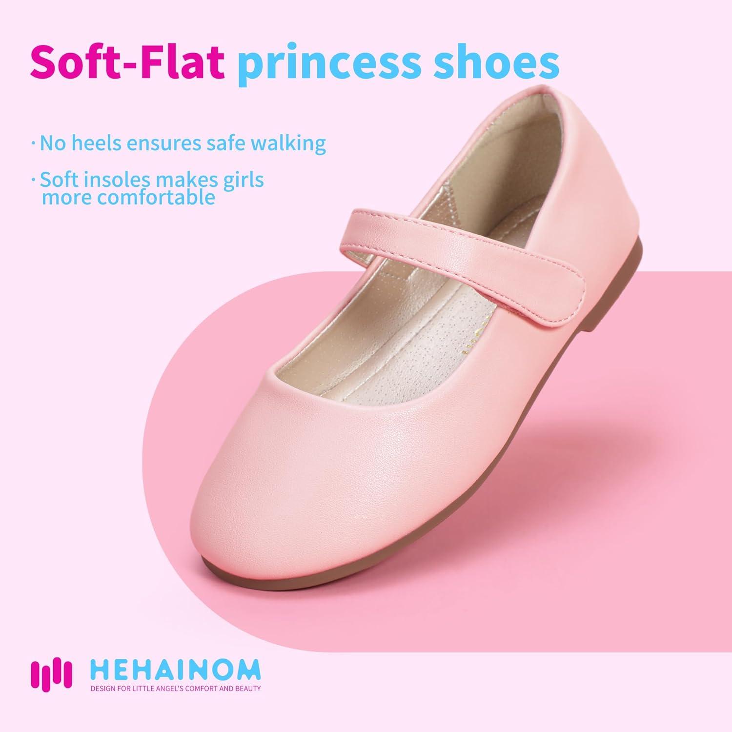 Hehainom Toddler Girls Flats Mary Jane Flower Girl Dress Shoes School Wedding Party Shoes(Pink Pu)