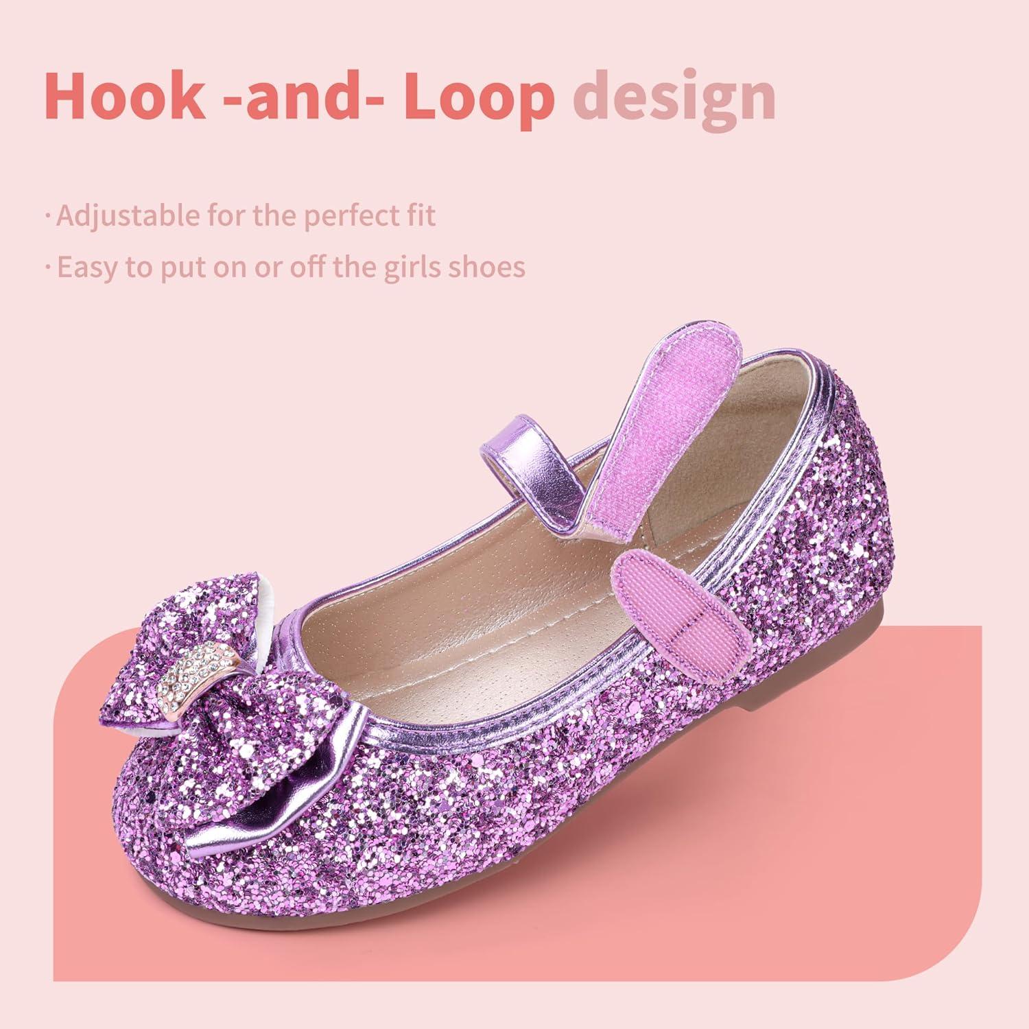 Hehainom Toddler Girls Flats Mary Jane Flower Girl Dress Shoes School Wedding Party Shoes(Purple Sequin)