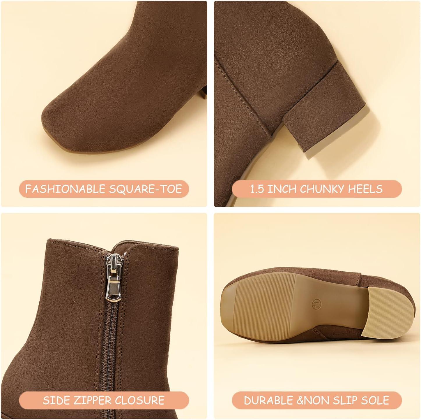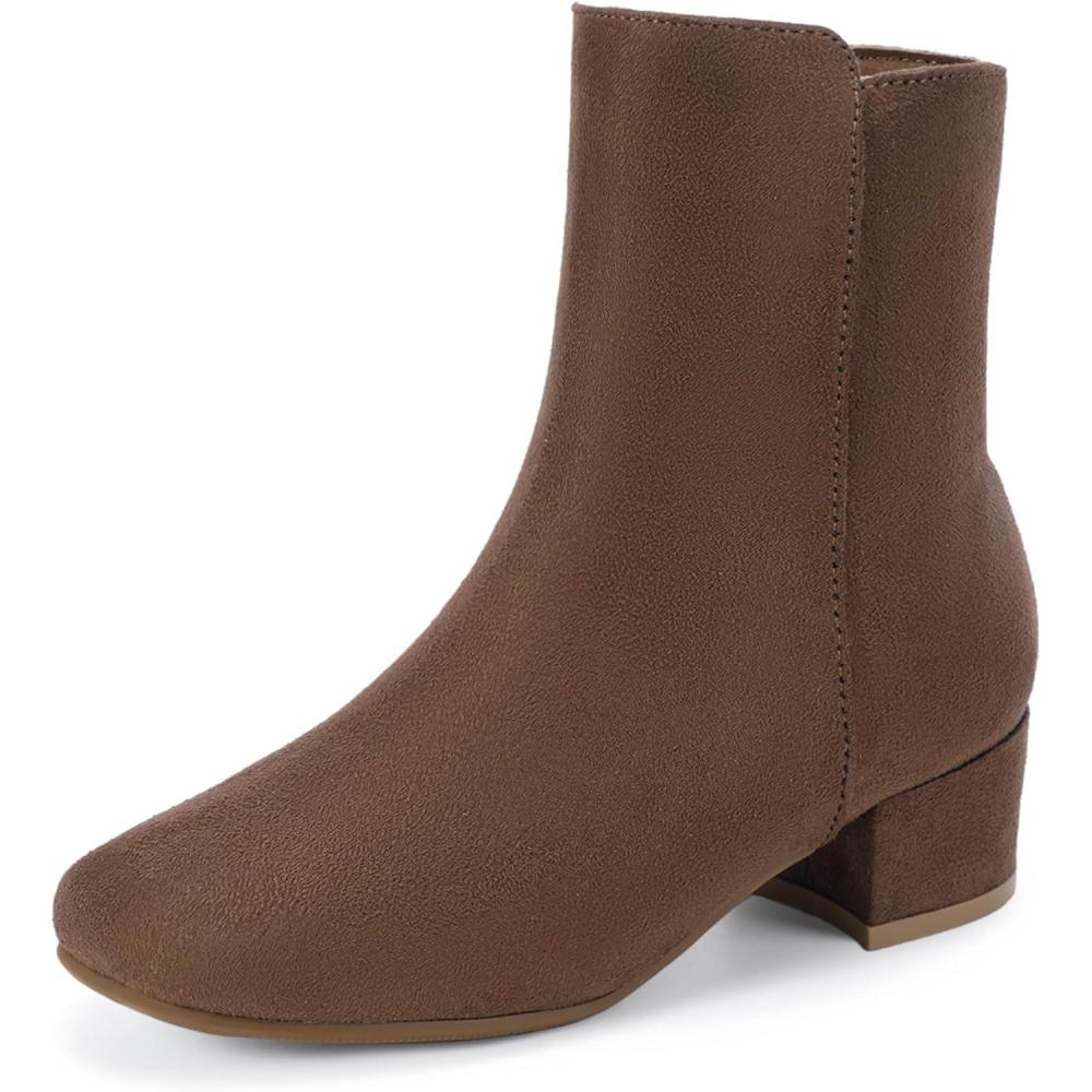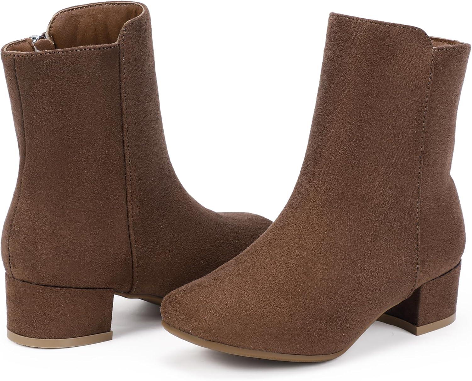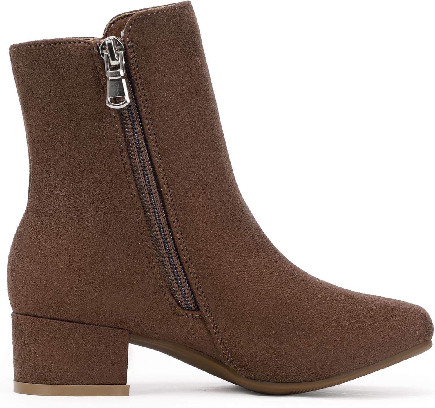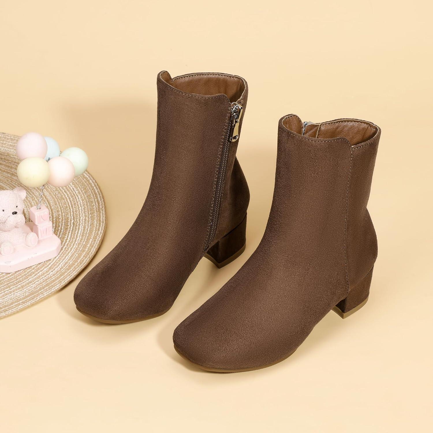 PANDANINJIA Girls Boots Fashion Square-Toe Dress Boots Low Heel Alyssa Ankle Booties with Zipper for Toddler Little Kids Big Kids(Brownsuede)
