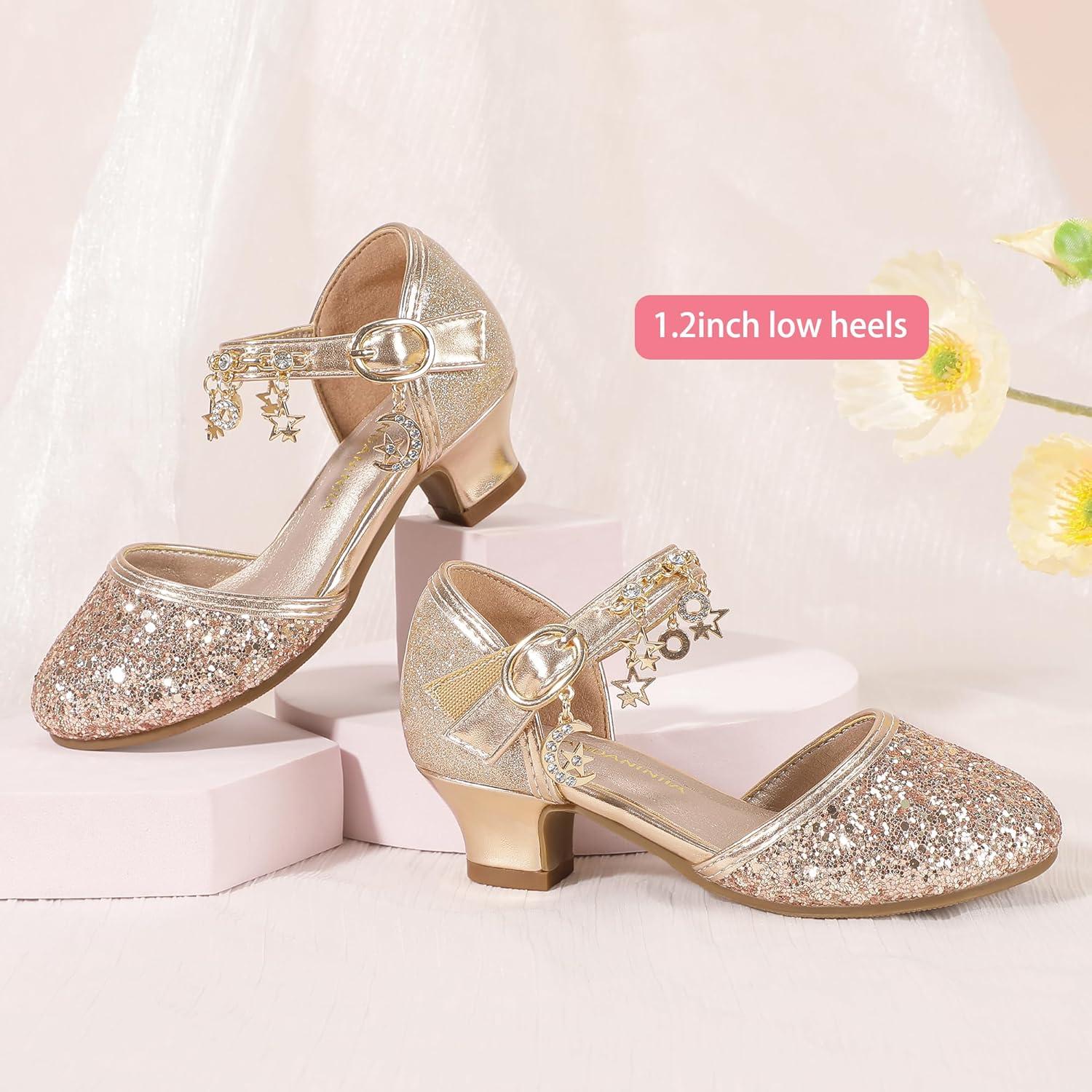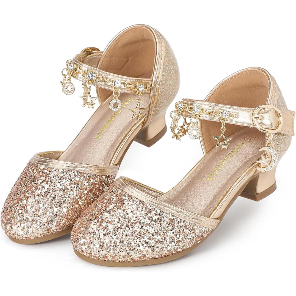 PANDANINJIA Girls Sandals Sequins Princess Dress Shoes Closed Toe Low Heels