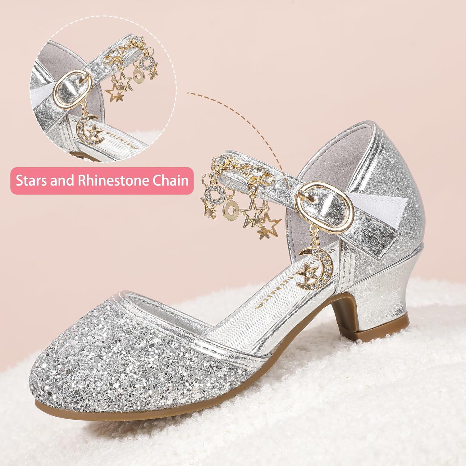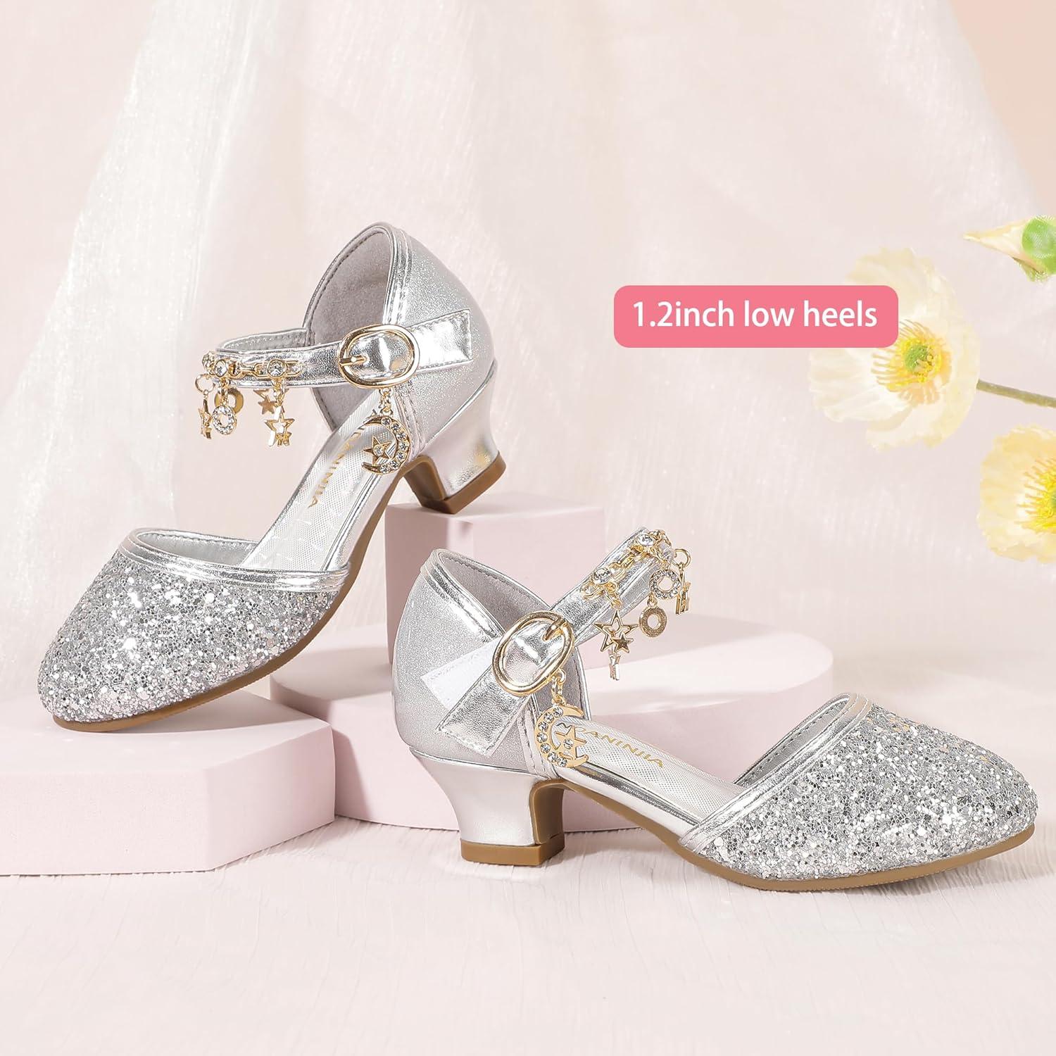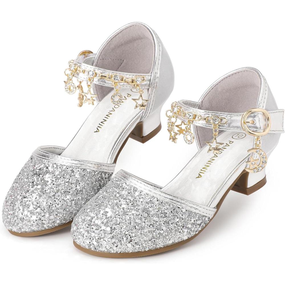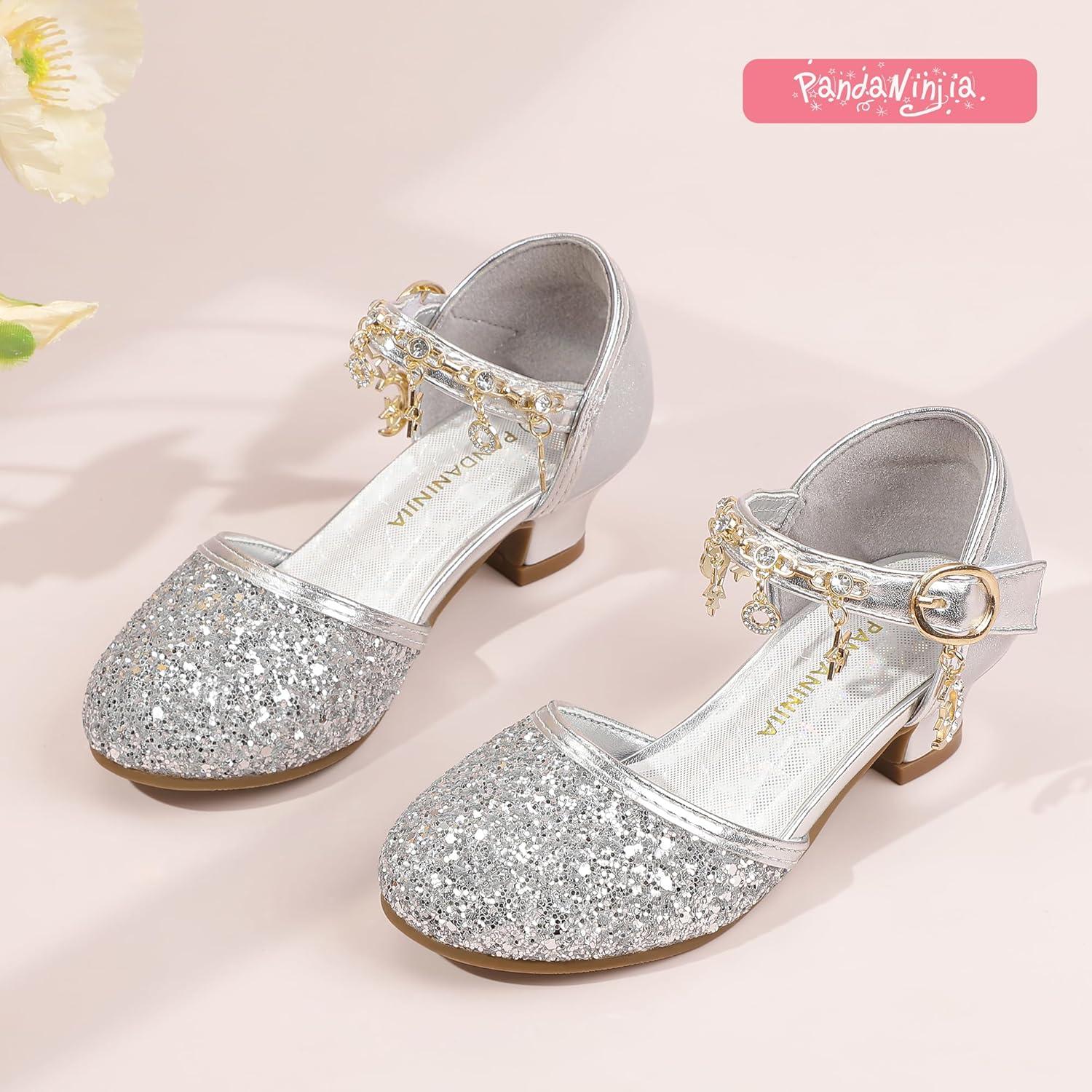 PANDANINJIA Girls Sandals Sequins Princess Dress Shoes Closed Toe Low Heels