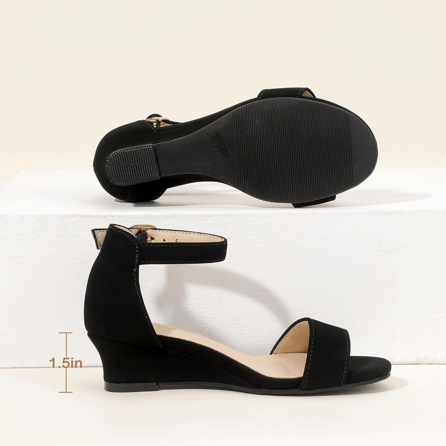 PANDANINJIA Girls Sandals Wedge Low Heels Round Open Toe Flower Girls Shoes Ankle Strap Wedding Party Little Big Kids Dress Shoes(Black Nubuck)
