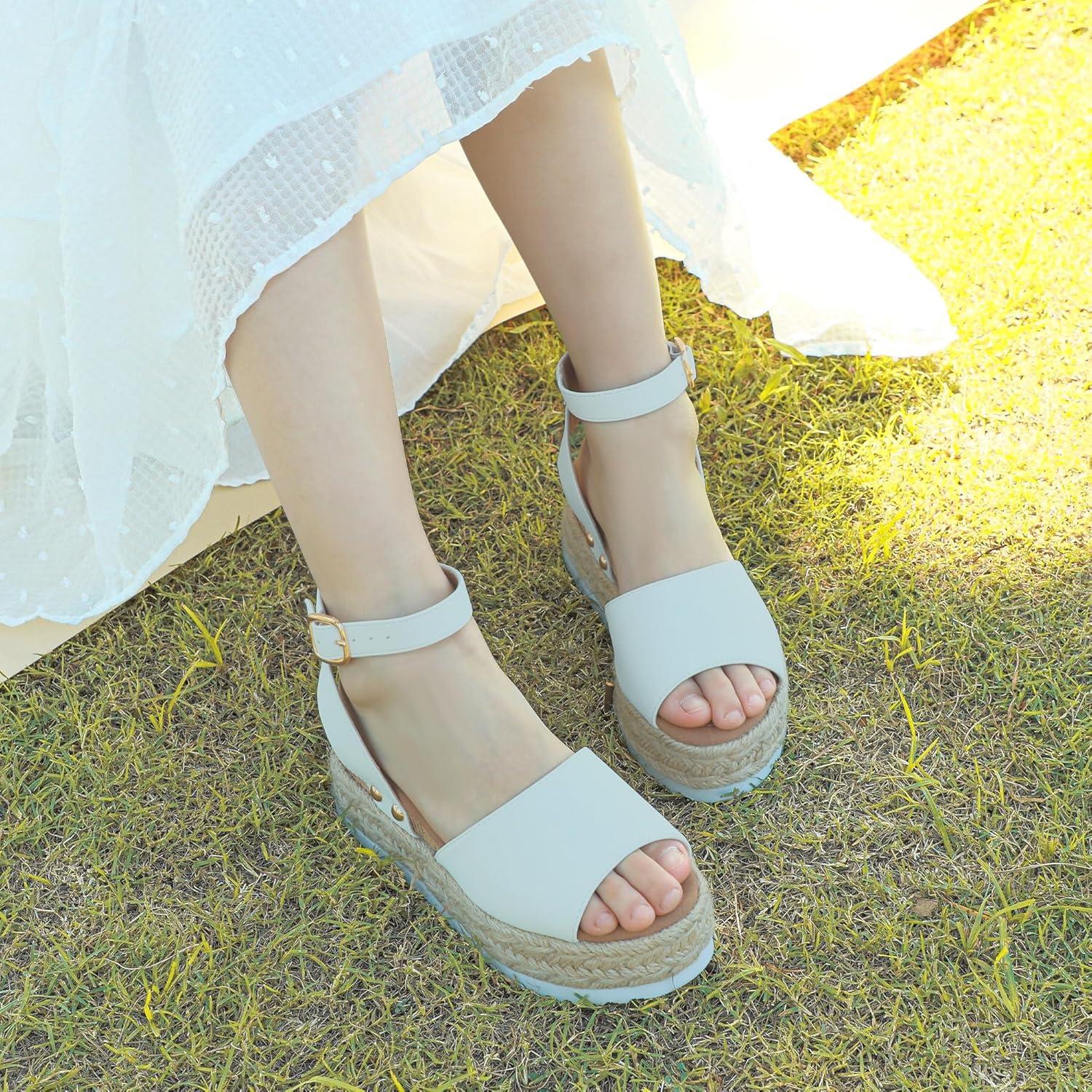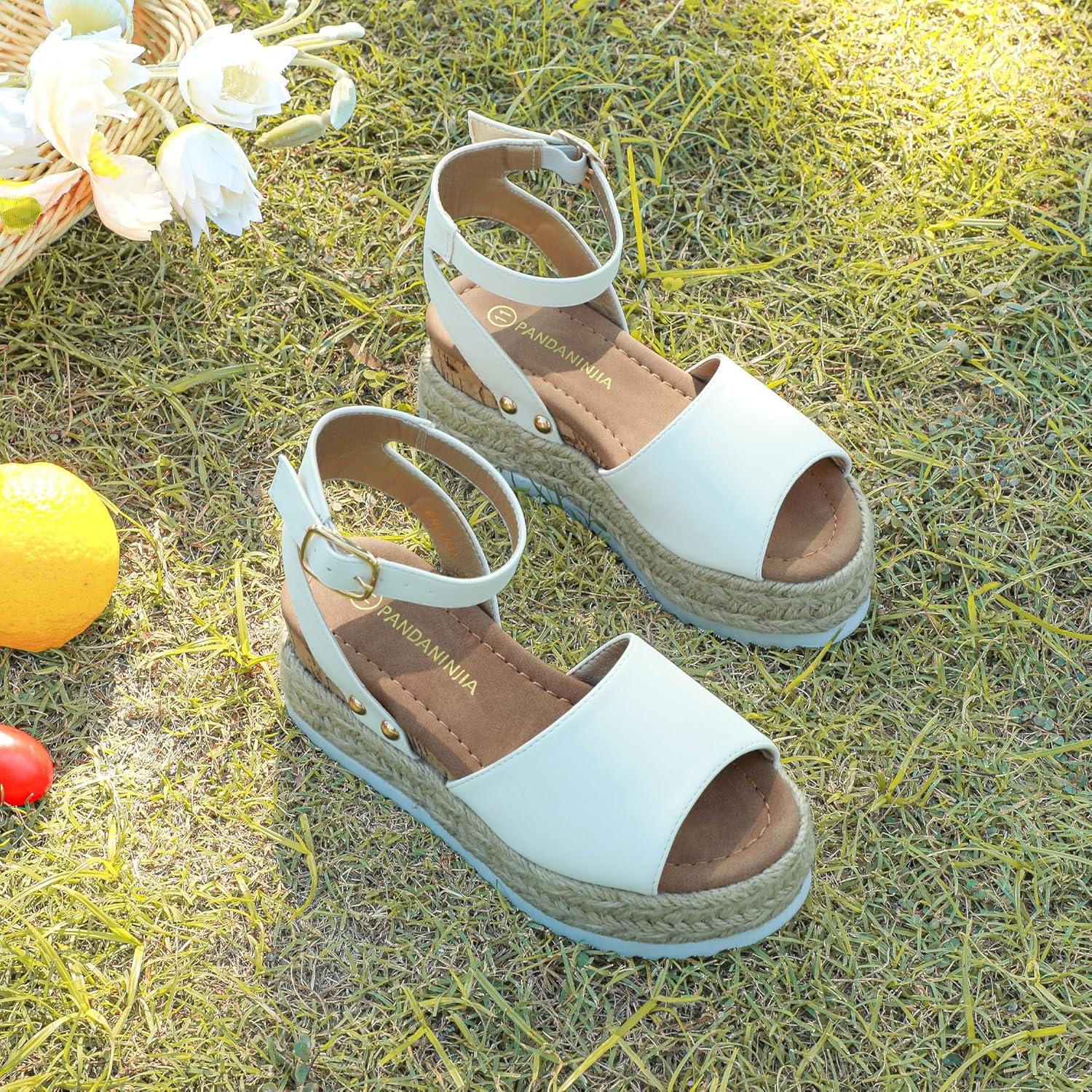 PANDANINJIA Girls Sandals Wedge Platform Espadrille Open Toe Summer Little Big Kid Flower Girl Heels Dress Shoes(White Nubuck)