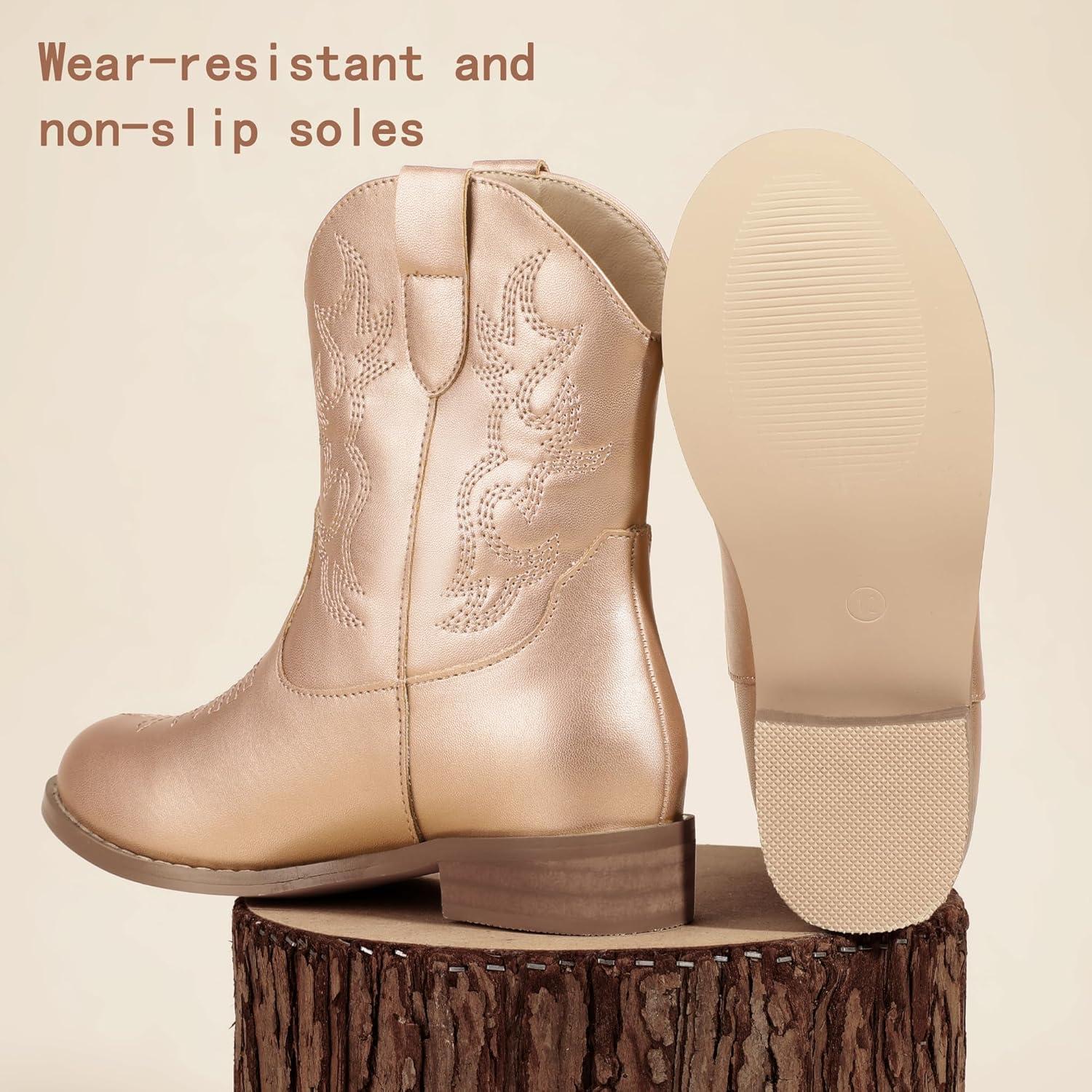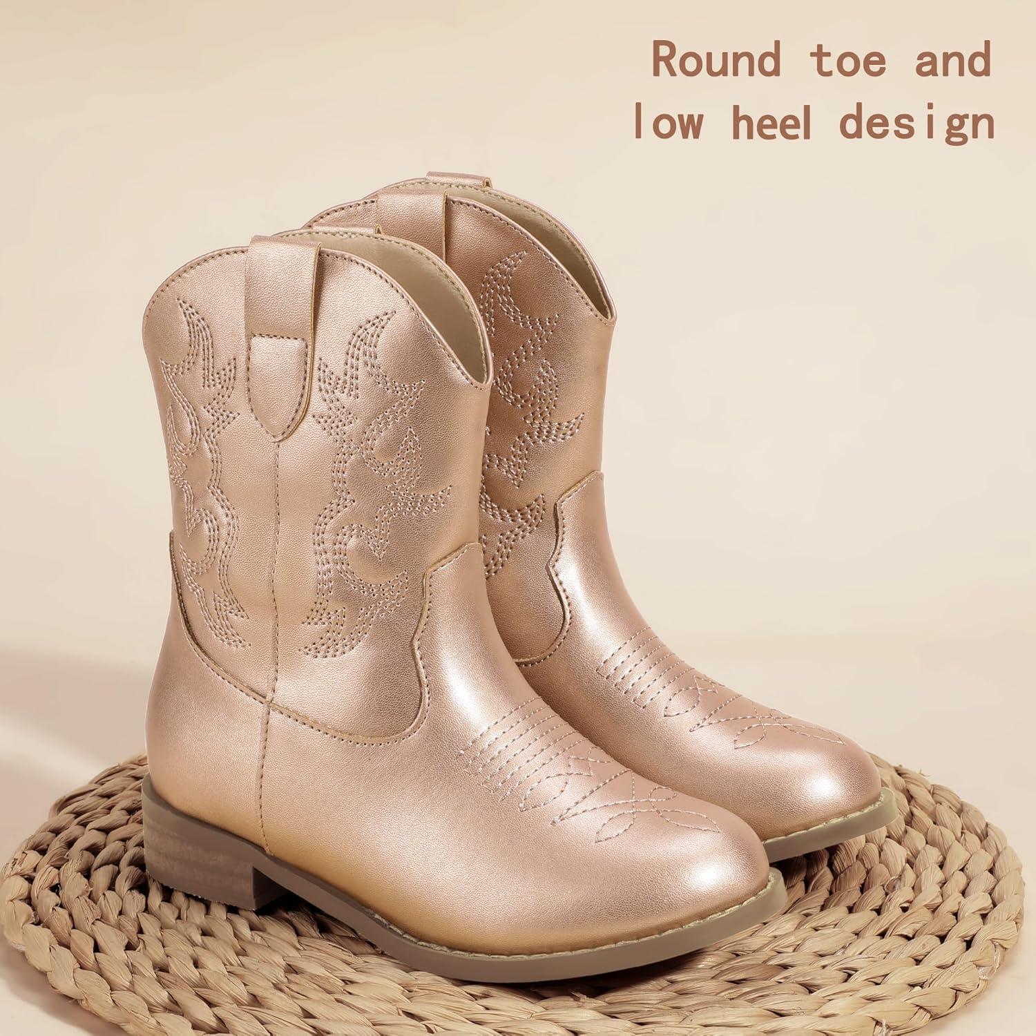 PANDANINJIA Girls Toddler Cowgirl Boots Riding Round Toe Boys Cowboy Boot Little Kids Short Calf Western Cowgirl Booties(Rose Gold)